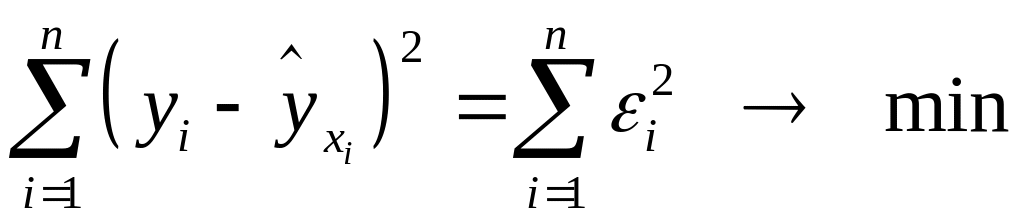Т.е. из всего множества линий линия регрессии на графике выбирается так, чтобы сумма квадратов расстояний по вертикали между точками и этой линией была бы минимальной (рис. 1.2):