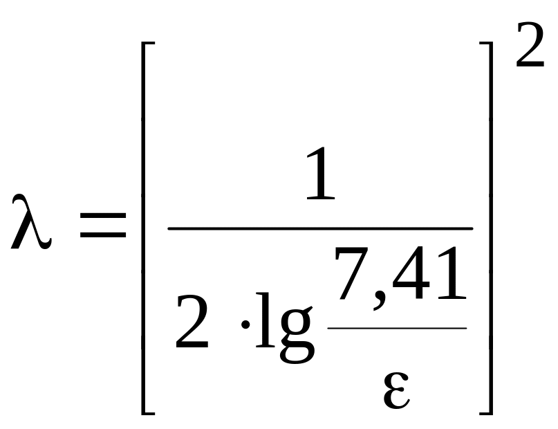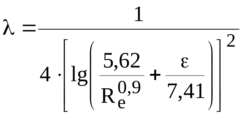 Коефіцієнт гідравлічного опору газопроводу при турбулентному русі є функцією та і дорівнює: