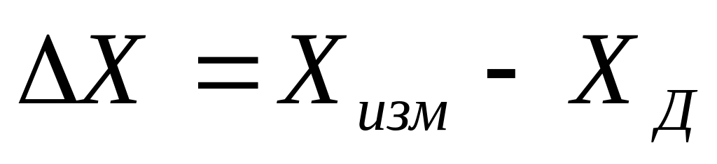 Погрешность результата измерения – это отклонение результата измерения от истинного значения измеряемой величины. Так как истинное значение может быть получено только в результате бесконечного процесса измерений и требует непрерывного совершенствования методов и средств измерений, то оно всегда остается неизвестным. В практических целях вместо истинного значения используется действительное значение измеряемой величины, т.е. значение, полученное экспериментальным путем и настолько близкое к истинному, что в рамках поставленной измерительной задачи может быть использовано вместо него. Таким образом, погрешность измерения может быть выражена зависимостью: