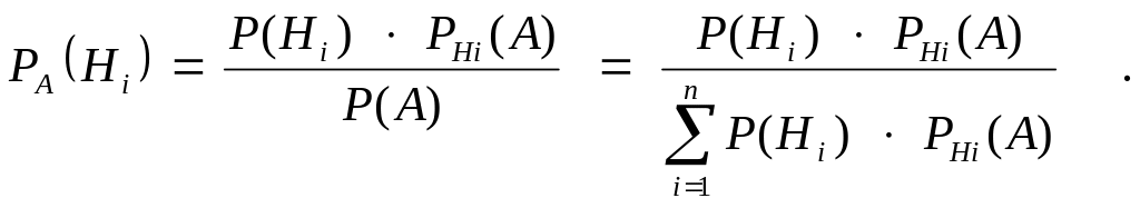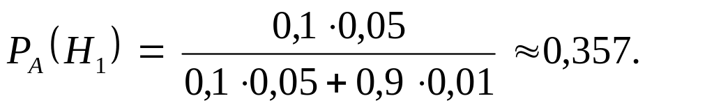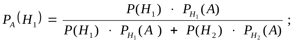 Необходимо найти вероятность гипотезы Н1 при условии, что событие А произошло. Согласно формуле Байеса (1.14) имеем:
