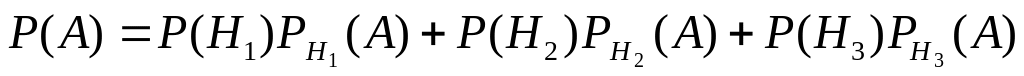 Если событие А может произойти с одной из попарно несовместных гипотез Н1, Н2,….Нn, образующих полную группу, то вероятность появления события А равна сумме произведений вероятностей каждой из гипотез на соответствующую условную вероятность события А: