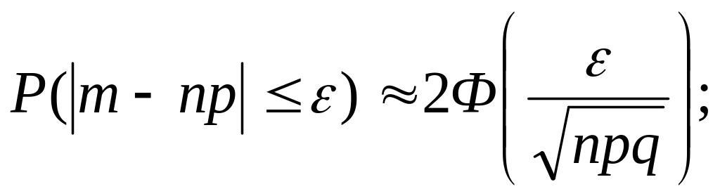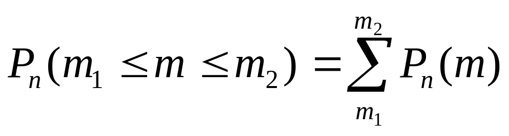 Если число независимых испытаний n достаточно велико, то для вычисления вероятности появления события от m1 до m2 раз: