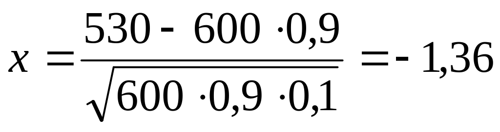 Пример 1.18. Доля изделий высшего сорта на данном предприятии составляет 90%. Найти вероятность того, что из взятых на проверку 600 изделий: а) высшего сорта окажется 530 изделия; б) из 600 изделий от 520 до 535 изделий (включительно) будут высшего сорта; в) наивероятнейшее число изделий высшего сорта.