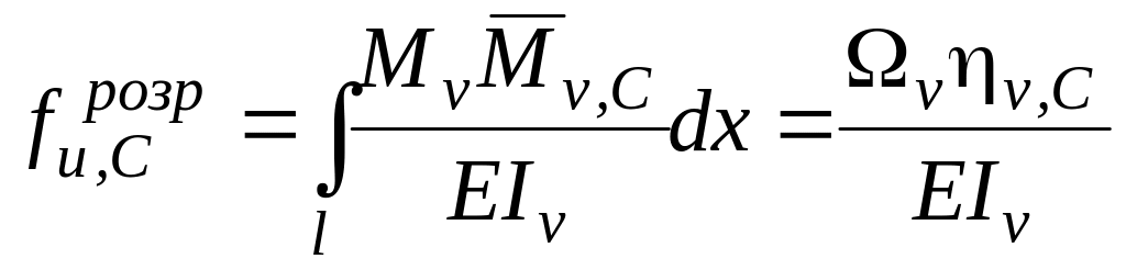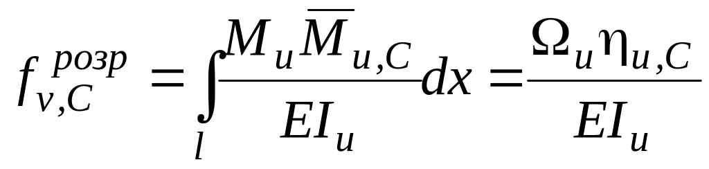 Розрахункові значення прогинів перерізу С балки в напрямі головних осей и і v мажна визначити за методом Мора, перемножуючи відповідні епюри по правилу Верещагіна: