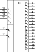 Микросхема ИДЗ представляет собой дешифратор - демультиплексор с 4 на 16. Он позволяет преобразовать четырехразрядный двоичный код, поступивший на входы АО....A3, в напряжение низкого уровня на одном из шестнадцати выходов 0...16. Кроме адресных входов АО...A3 устройство имеет еще два входа ЕО, Е1 разрешения дешифрации, т. е. они играют роль стробирующих входов, если на них низкий уровень напряжения. Если хотя бы на одном из входов Е0, Е1 установить высокий уровень, то на всех выходах 0...16 будет высокий уровень напряжения независимо от того, какой код подан на входы АО...A3. Такой режим используется при наращивании числа разрядов дешифрируемого кода.