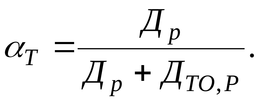Важнейшим комплексным показателем надежности является коэффициент технической готовности, представляющий собой отношение времени пребывания автомобиля в работоспособном состоянии (Др) к сумме его и времени простоя в ТО и Р (ДТО,Р)