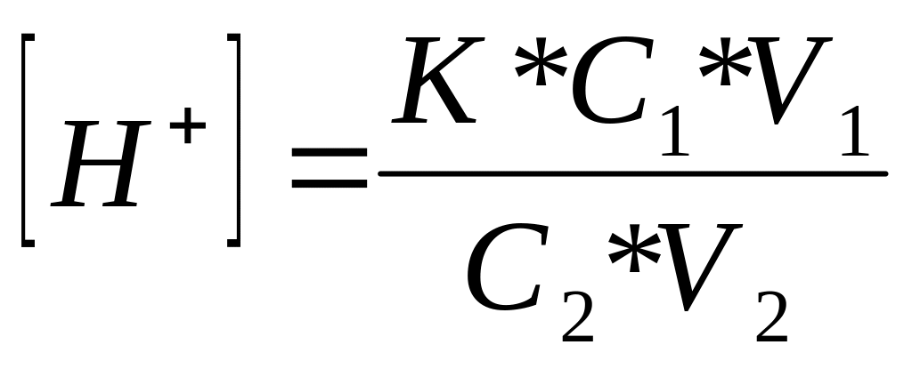 На основі знайденої концентрації водневих іонів буферного розчину вираховують рН за формулою: