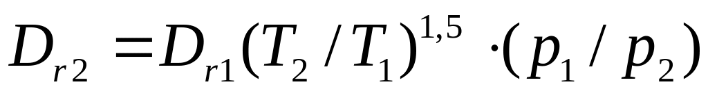 Коэффициент молекулярной диффузии Dr ,( м2/с), газа А в газе В: