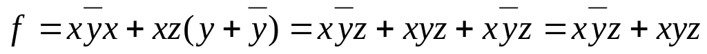 - раскрыть скобки и избавиться от повторяющихся конъюнкций в соответствии с правилом х+х=х.