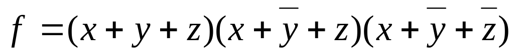 Пример 3.6 Составить СКНФ функции, заданной в примере 3.5. Функция принимает нулевое принимает нулевое значение на трех наборах. Следовательно, в СКНФ входят три конституенты нуля, т.е.