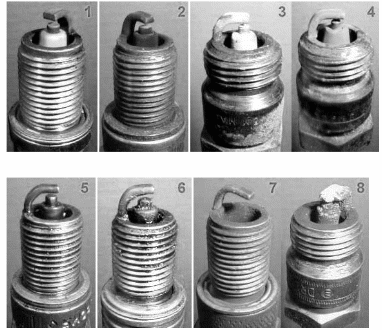 Фото № 8 последнее в этом обзоре. Электрод свечи оброс зольными отложениями, цвет не играет решающей роли, он лишь свидетельствует о работе топливной системы. Причина этого нароста-сгорание масла вследствие выработки или залегания маслосъемных поршневых колец. У двигателя повышенный расход масла, при перегазовках из выхлопной трубы сильное синее дымление, запах выхлопа похож на мотоциклетный.