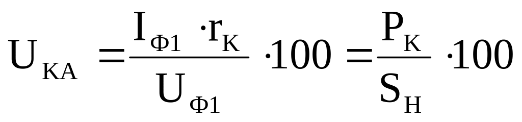 Активная UКА и реактивная UKR составляющие напряжения короткого замыкания в процентах могут быть определены по формулам: