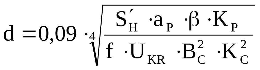 Поперечное сечение стержня магнитопровода представляет собой ступенчатую фигуру, число ступеней которой зависит от мощности трансформатора. Из таблицы 2.2 /1/ выбираем число ступеней и коэффициент заполнения площади круга ККР, который определяет отношение площади ступенчатой фигуры стержня в сечении к площади круга диаметром d с учетом охлаждающих каналов в сечении стержня.