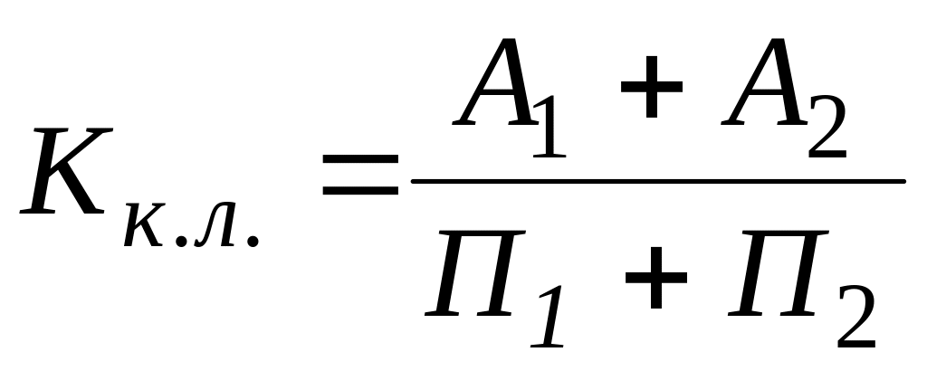 2) Коэффициент критической ликвидности (или промежуточный коэффициент покрытия, быстрой, срочной ликвидности) отражает прогнозируемые платежные способности организации при условии своевременного проведения расчетов с дебиторами.