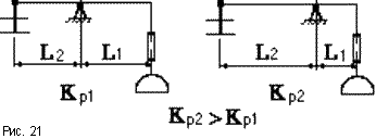 Так примером одного из функциональных звеньев системы регулирования воды в баке (см. выше) является обычный рычаг (рис.14). Уравнение статики для него имеет вид y = K х. Его можно изобразить звеном, функцией которого является усиление (или ослабление) входного сигнала в K раз. Коэффициент K = y / х, равный отношению выходной величины к входной называется коэффициентом усиления звена. Когда входная и выходная величины имеют разную природу, его называют коэффициентом передачи.