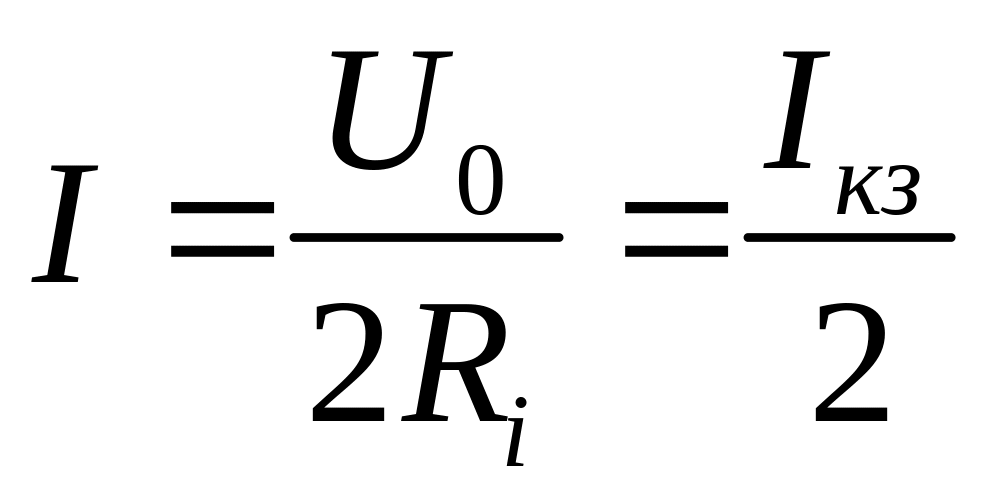 Порівнюючи два останніх вирази, бачимо, що потужність Ре досягає найбільшого значення при Ri = Rе, струм в колі буде відповідати співвідношенням