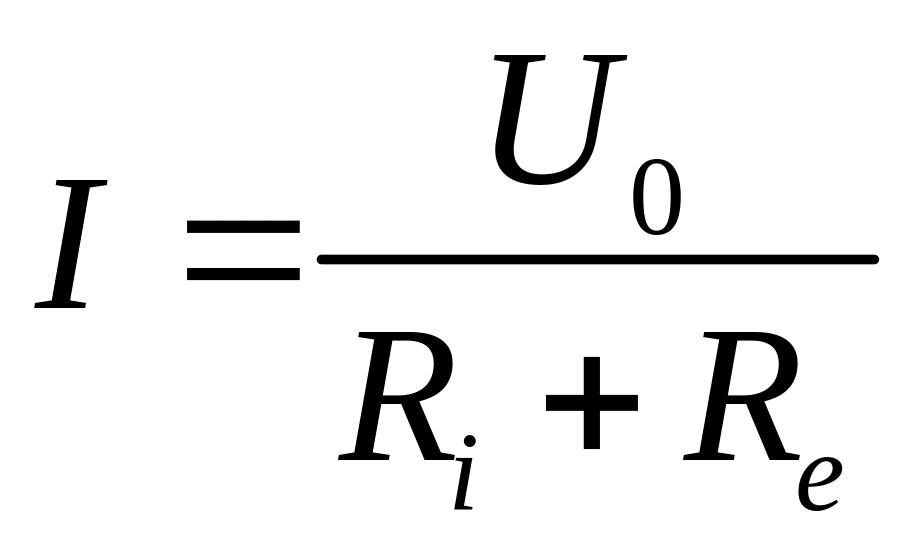 Струм в колі визначається за сумою опору навантаження Re та внутрішнього опору Ri. Так як опір Ri є незмінним, то зміна струму в колі залежить від величини опору навантаження Re, і визначається за рівнянням закону Ома: