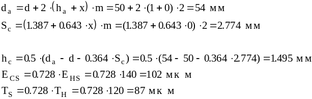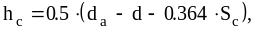 де Sc ‑ номінальна товщина зуба за постійною хордою.