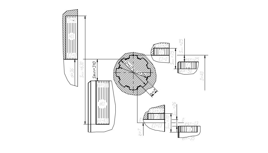 1. Номінальний розмір зовнішнього діаметра 40 мм. За таблицею довідника ГОСТ 1139-80 "Розміри шліцьових з'єднань" для легкої серії — z d D = 8 36 40; в = 7 мм.