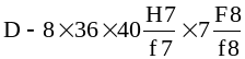 ‑ для шліцьового з'єднання з параметрами Z=8;d=36;D=40 мм; в = 7 мм з центруванням за D: