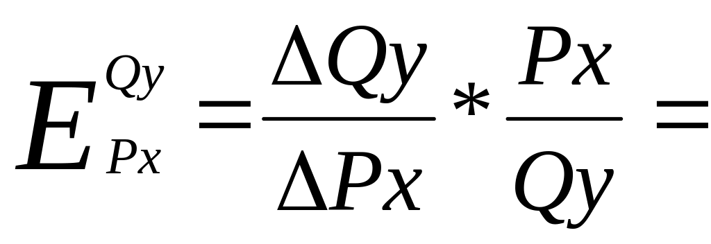 Коефіцієнт перехресної еластичності попиту на товар У по цiні товару Х дорівнює: