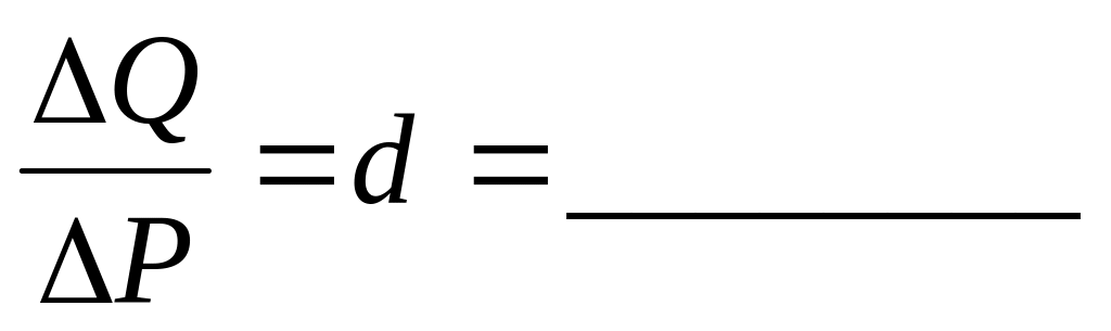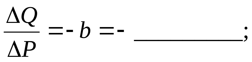 Для лінійних функцій = -b. Підставивши значення ED = ____; Q = ____; Р = ____, знаходимо b, яке дорівнює ___. Підставивши значення Q, Р, b в рівняння QD = а - bР, знаходимо значення параметра «a», яке дорівнює ___. Отже, функція попиту має вигляд:
