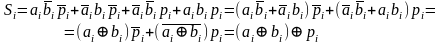 Для синтеза схемы одноразрядного сумматора запишем выражения для Si и pi+1 (выходов сумматора):