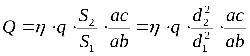 Насправді сила Q буде декілька менше, ніж розрахована по рівнянню (1.19), внаслідок тертя поршня об стінки циліндра. Це зменшення враховується введенням коефіцієнта корисної дії η = 0,8, і тоді: