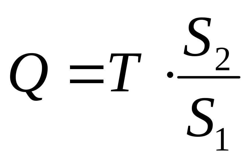 Сила Q буде в стільки раз більше сили Т, в скільки разів площа поршня S2 буде більше площі малого поршня S1: