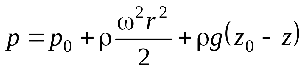 В результаті дії цих сил вільна поверхня рідини представиться поверхнею обертання. Вирішуючи диференціальне рівняння тиску, отримуємо: