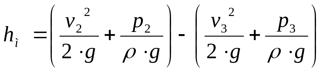 Таким чином, для визначення і м по рівняннях (1.34) і (1.35) необхідно знати величини hдл і hм для відповідних ділянок. Ці величини знаходимо з рівнянь (1.37) і (1.38), використовуючи результати вимірювань. Слід зазначити, що при визначенні hм по рівнянню (1.35) кінетична енергія розраховується за швидкістю, яким володіє потік за місцевим опором, тобто при визначенні hм на ділянці 2—3 у формулу (1.35) підставляється швидкість на ділянці.