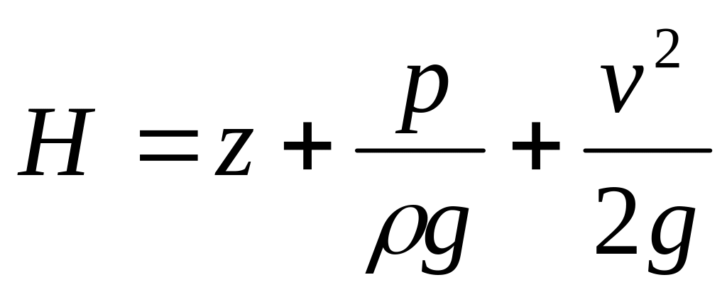 Повна питома енергія рідини в даному перетині (напір) для сталого потоку визначається сумою питомих кінетичної і потенційної енергій: