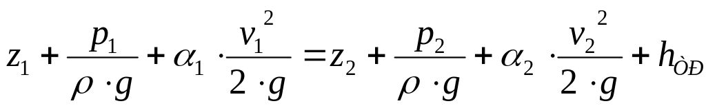 Відомо, що при русі в'язкої рідини її напір зменшується вниз за течією, оскільки частка потенційної енергії витрачається на подолання опорів. Якщо питома потенційна енергія, витрачена рідиною на подолання опорів між першим і другим перетинами, рівна hтр, то рівняння Бернуллі, що зв'язує питомі повні енергії в цих двох перетинах, матиме вигляд: