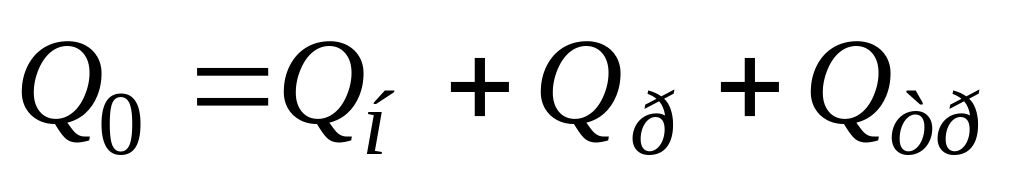 де Q0 - загальна витрата води, м3/год; Qн- норма годинної витрати води на гасіння пожежі, м3/год; Qф - втрати води на фільтрацію у водовід-водному нагорному каналі, м3/год; Qтр - витрати води у нагірному трубопроводі (приймається 0,5 % від (Qн+Qф) на 1 км трубопроводу).