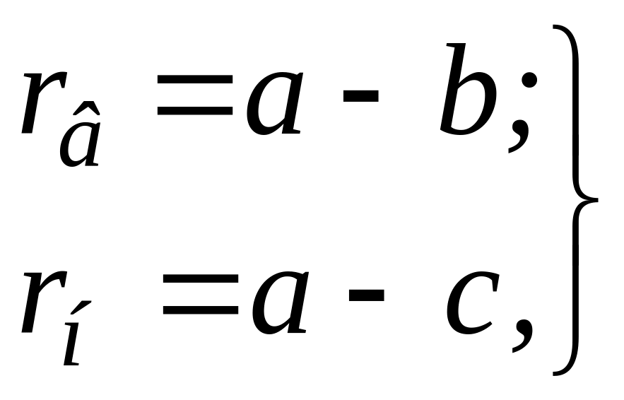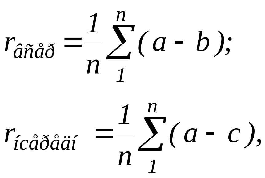 де v'=( a- b) - rвсередн; v"= (а-с) - rнсередн.