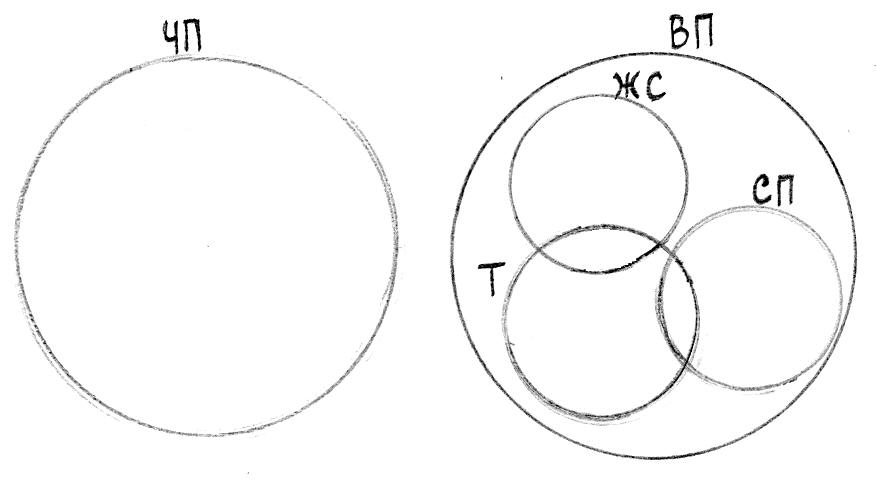 Задание 1. Выделить в заданном тексте пять простых атрибутивных, экзистенциальных или двухместных релятивных суждений и описать их видовые характеристики. Отобразить отношения между S и P атрибутивных суждений с помощью круговых схем Эйлера.