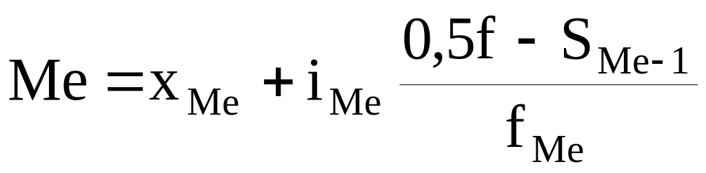 Медиана интервального вариационного ряда распределения определяется по формуле