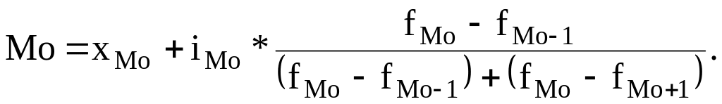 Для интервальных рядов распределения с равными интервалами мода определяется по формуле: