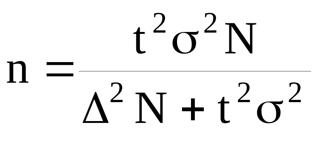 Аналогичным образом из формулы ошибки выборки для бесповторного отбора находят, что числитель выборки для среднего значения показателя будет рассчитываться по следующей формуле.