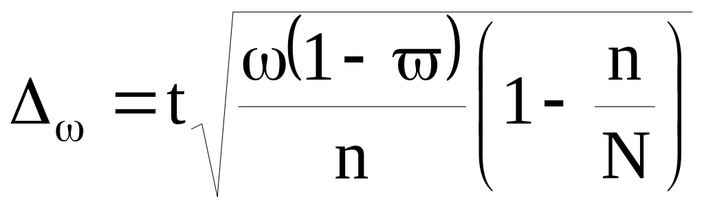 Предельная ошибка выборки при бесповторном отборе определяется по следующим формулам: