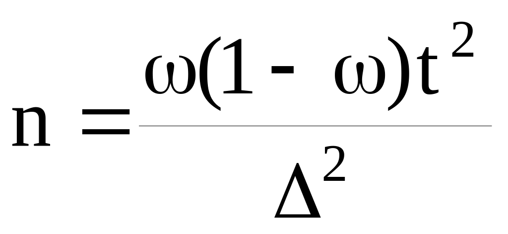 При выборочном измерении доли признака необходимая численность выборки определяется по формуле: