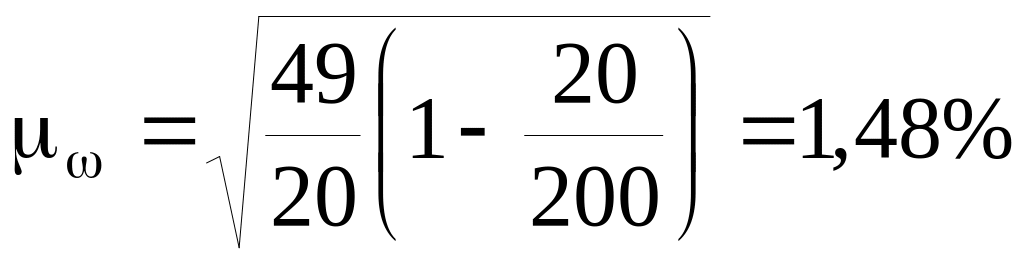 Так, при 5%-ной выборке из партии товара в 2 000 ед. численность выборки n составляет 100 ед. (5*2000:100), а при 20%-ной выборке она составит 400 ед. (20*2000:100) и т.д.