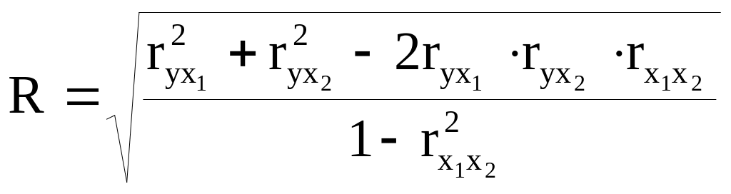 Показателем тесноты связи, устанавливаемой между результативным и двумя или более факторными признаками является совокупный коэффициент множественной корреляции R.
