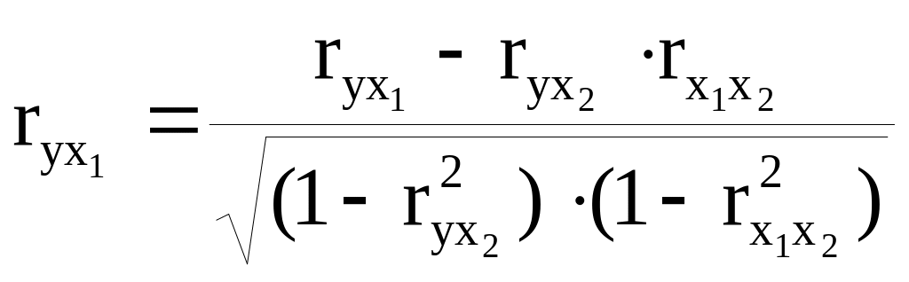 Частный коэффициент первого порядка между признаками y х1 при исключенном влиянии признака х2 вычисляется по формуле: