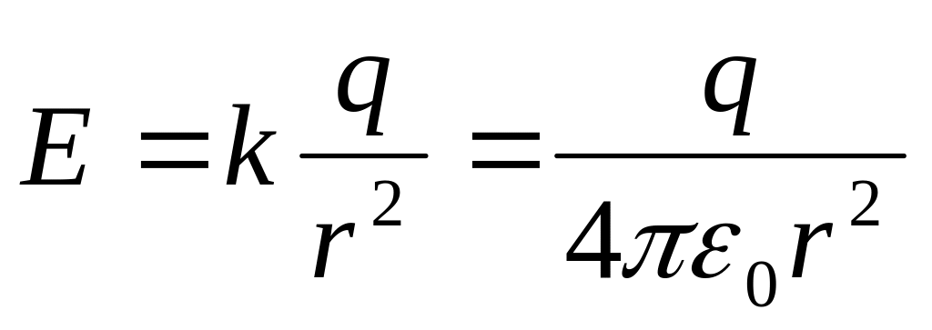 Из закона Кулоны следует, что напряженность поля неподвижного точечного заряда q равна