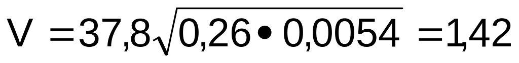 H =0,6 м; b =1,0 м; m1=1,5; m2=1,5; i = 5,4 0/00; n=0,02