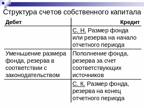 Рис.10.4 Схема – структура счетов собственного капитала