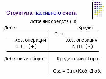 На пассивных бухгалтерских счетах ведется учет источников образования хозяйственных средств, т.е. учет наличия и движения капитала и обязательств предприятия.