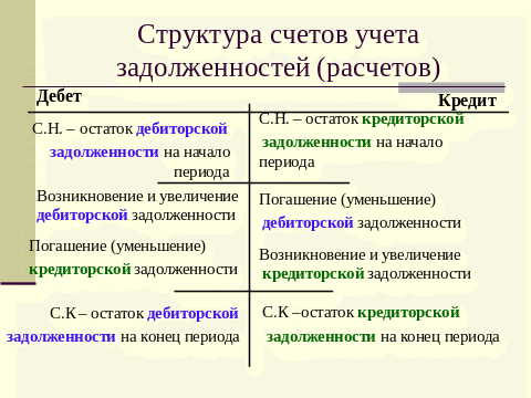 Рис. 5.4 Структура счетов учета задолженностей (расчетов)