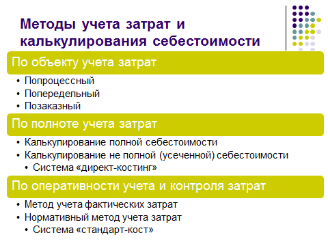 Рис. 9.4 Методы учета затрат и калькулирования себестоимости